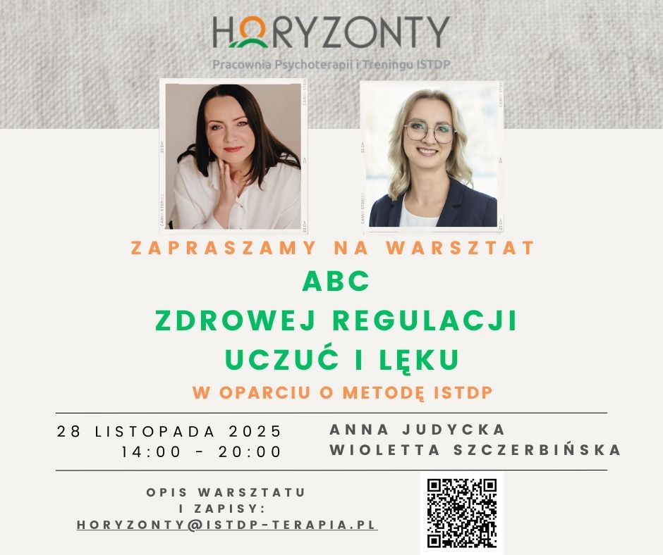 Pracownia Psychoterapii i Treningu ISTDP Horyzonty zaprasza na warsztat dotyczący zdrowej regulacji uczuć i lęku w oparciu o metodę ISTDP.